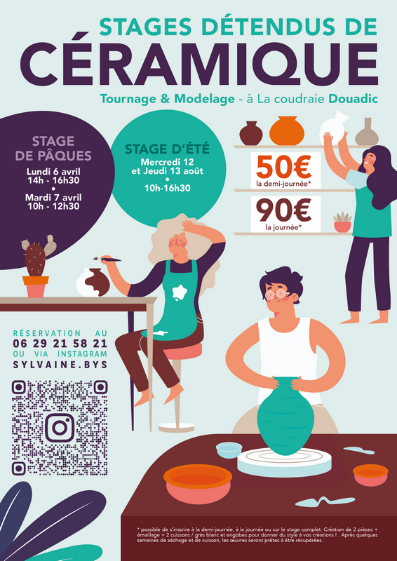 Je vous propose des stages dans une ambiance simple et détendue, ouverts aux débutants comme aux personnes un peu plus expérimentées. Pendant ces ateliers, vous pourrez explorer le tournage et/ou le modelage, selon vos envies et votre projet. Et si vous venez sans idée précise, c’est ok : je vous accompagne pour explorer une forme, un objet ou une direction qui vous inspire. L’idée est de prendre le temps, expérimenter la matière et se faire plaisir en créant.
