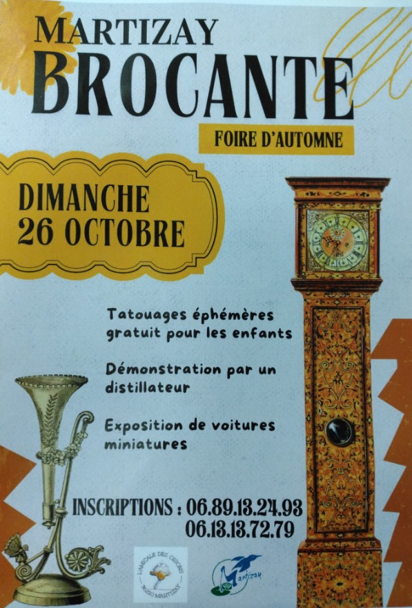 Brocante d'automne qui rassemble plus de 300 exposants dans le bourg. Tatouage éphémères gratuit pour les enfants, démonstration par un distillateur, exposition de voitures miniatures. Manège, buvette et restauration sur place.