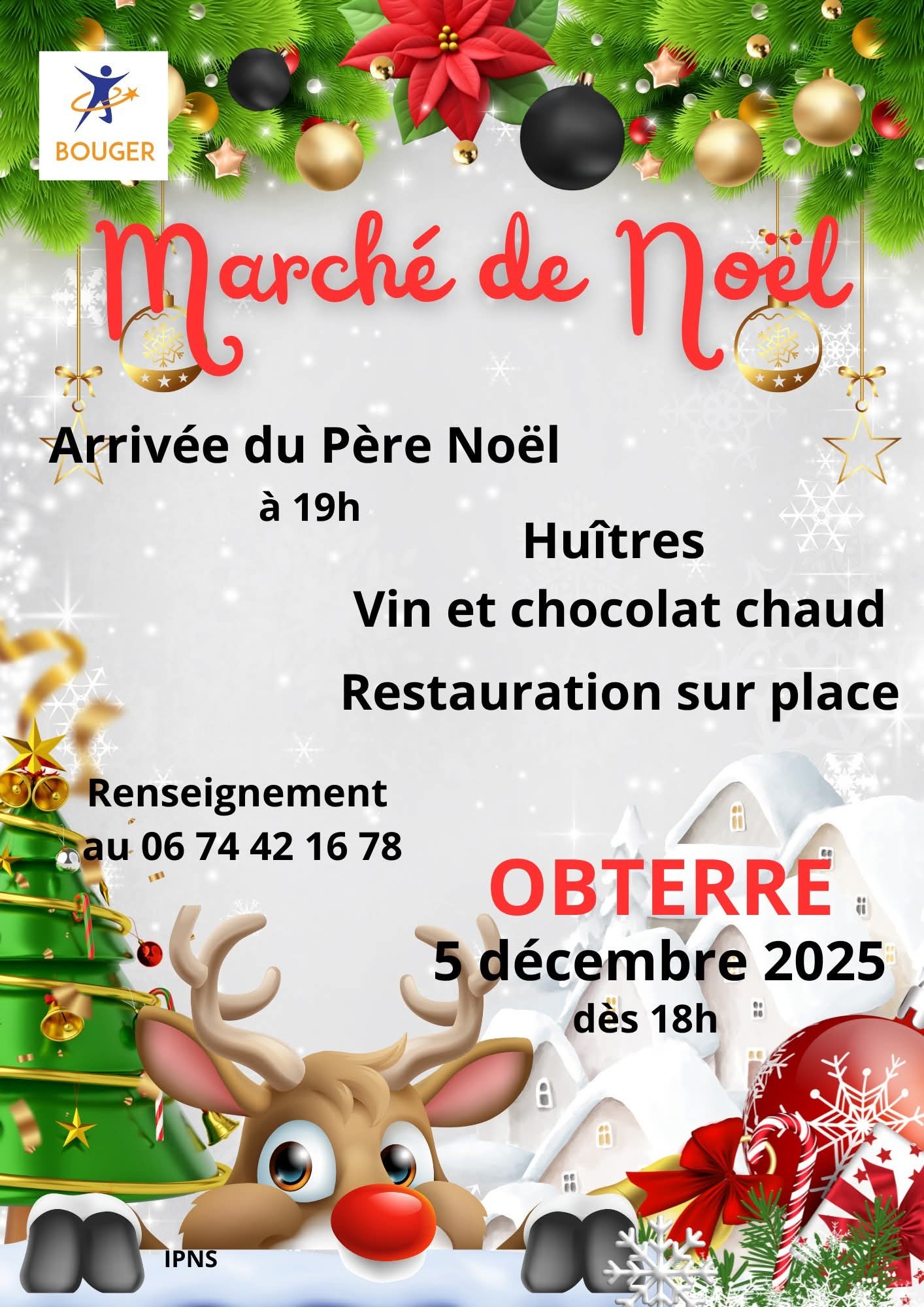 L'association BOUGER organise son 2e marché de Noël. Venue du Père Noël. Spectacle de feu. Artisans et producteurs locaux. Buvette et restauration sur place ou à emporter.