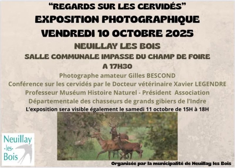 Conférence par le Docteur vétérinaire Xavier Legendre, Professeur muséum d'histoire naturel, Président de la fédération des chasseurs de l'Indre. Exposition photo par Gilles Bescond.