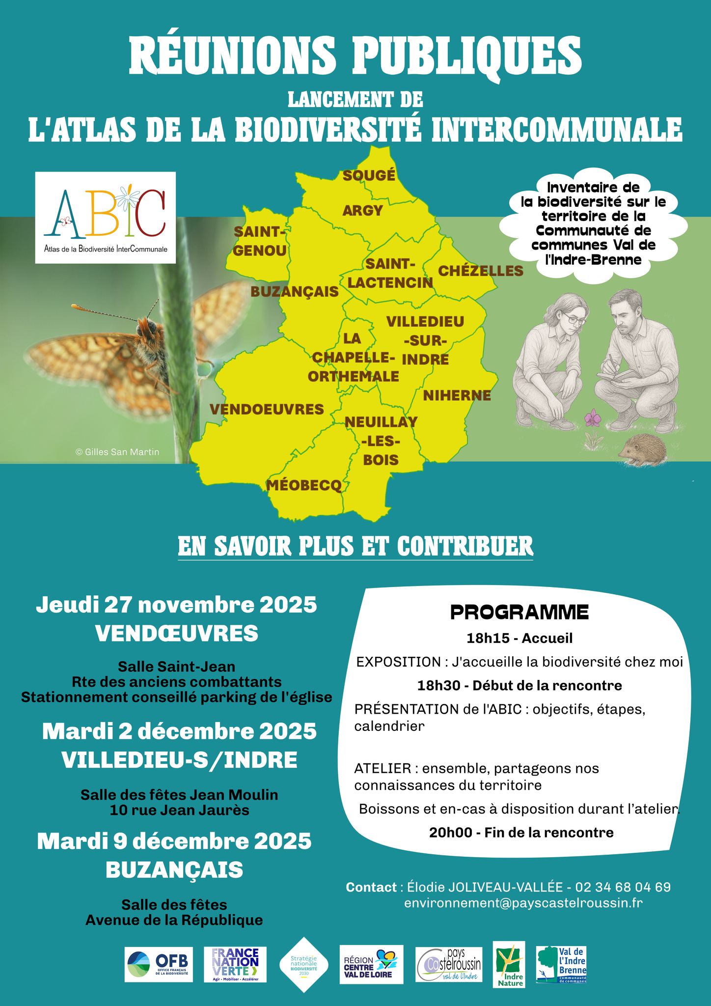 Lancement de l'atlas de la biodiversité. En savoir plus et contribuer. Exposition j'accueille la biodiversité chez moi. Présentation de l'ABIC: objectifs, étapes, calendrier. Atelier: ensemble, partageons nos connaissances du territoire. Boisson et encas à disposition durant l'atelier.