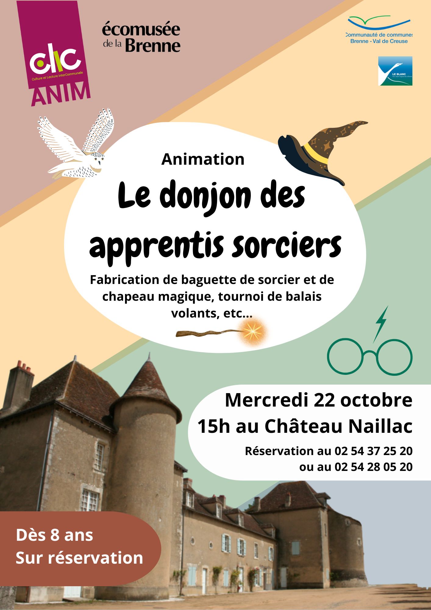 Rendez-vous au château Naillac pour te former aux rudiments de la sorcellerie. Après avoir rejoint une maison et écouté l'histoire de trois jeunes sorciers, tu apprendras à fabriquer un chapeau magique, à confectionner ta baguette de sorcier, à imaginer ton vif d'or et tu participeras au tournois de balais volant. Possibilité de venir déguisé en sorcier