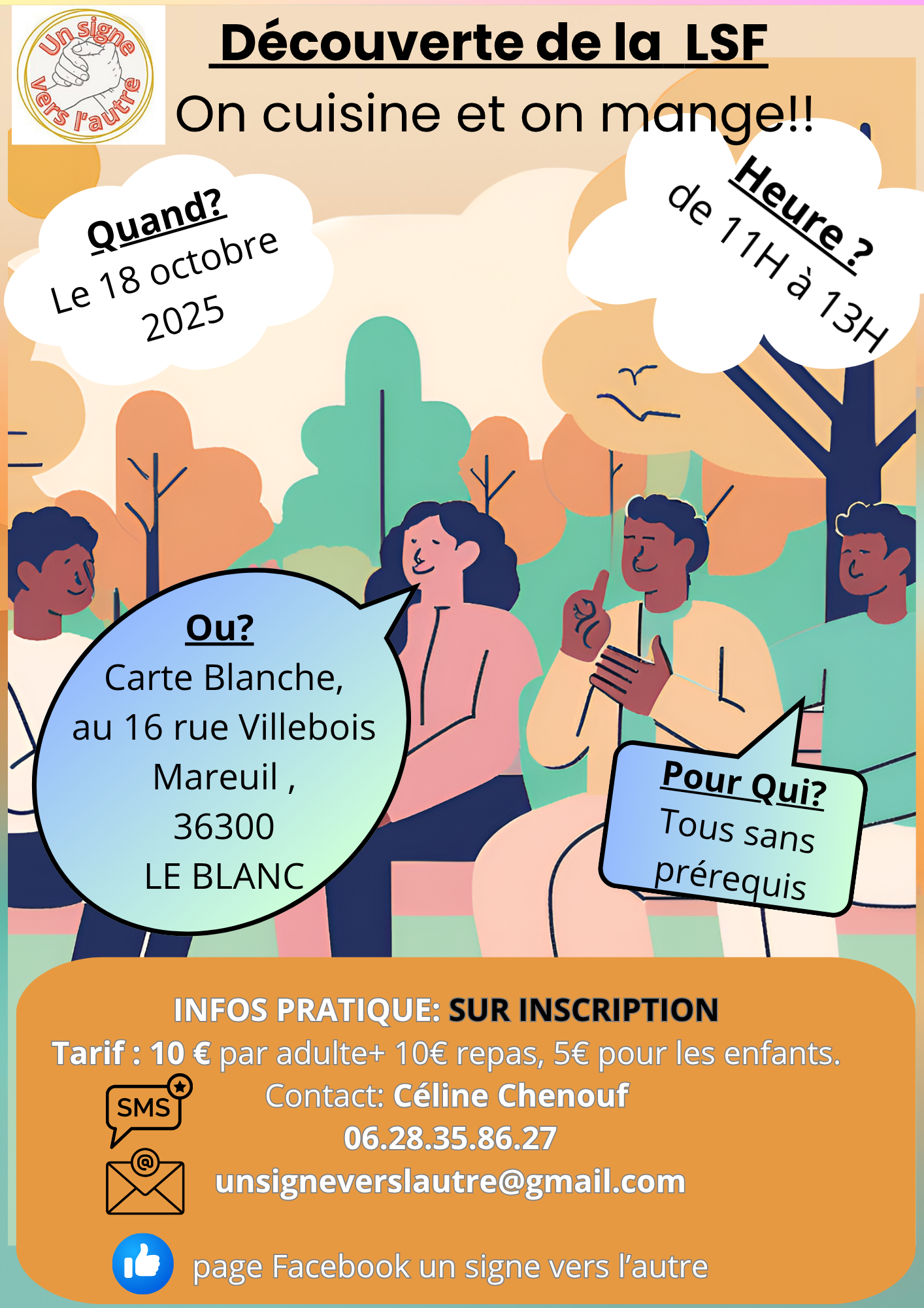 Atelier découverte de la Langue des Signes Française. Viens découvrir le vocabulaire de la cuisine.